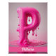 Letter P, Monogram of initial P. Capital Letter. Hot pink, dripping goo, floating. This image features a letter “P" in a vibrant shade of pink, with a visual effect that simulates paint or liquid melting. The letter appears to be made of dripping goo, creating an interesting play of textures and shapes. The background is light pink, which further highlights the letter and its three-dimensional effect.