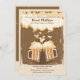 Una invitación con tema de cerveza con encanto antiguo. Cuenta con dos tazas de cerveza espumosa contra un fondo marrón y beige con textura desgastada. Perfecto para celebraciones de cumpleaños, despedidas de soltero, celebraciones de ascensos, fiestas de despedida y más.