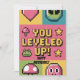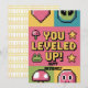 Este vibrante diseño de estilo retro presenta texto pixelado amarillo en negrita que dice "¡Te levanta!" rodeado de divertidos iconos de 8 bits que incluyen corazones, estrellas, hongos, ranas y fantasmas. Los coloridos fondos de bloques dan fuertes vibraciones nostálgicas de los jugadores. Perfecto para cumpleaños, hitos o logros, este gráfico lúdico es ideal para jugadores, geeks y amantes de la estética clásica de arcade y videojuegos. Un diseño divertido y enérgico para todas las edades.