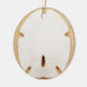 La leyenda del poema del dólar de arena escrito en la parte de atrás de este ornamento con una fotografía del primer de un dólar de arena en una playa arenosa lisa en el frente.