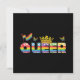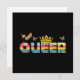 Esta tarjeta de saludo exhibe orgullosamente la palabra de color arcoiris "Queer" con una corona y una bandera de color arcoiris y mariposas, lo que lo hace una elección ideal para miembros y aliados de la comunidad LGBTQ, sobre todo durante el Mes del Orgullo.