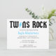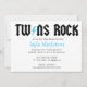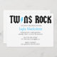 Diseño por el © 2013 de LGC. Invitación de la roca de los gemelos. Perfeccione para el musical o la fiesta de bienvenida al bebé temática del rock-and-roll. Busque los esquemas de color azules, rosados y amarillos.