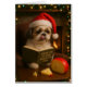Humorous Christmas card featuring an adorable Lhasa Apso reading 'The Cheese Tax at Home Regulations 2025' whilst trying to resist the urge to eat the cheese that someone's left on the table right in front of its nose!