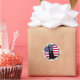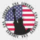 Este diseño patriótico cuenta con una silueta de la Estatua de la Libertad sobre el fondo de una bandera circular. El texto rodea la lectura "Liberty USA". ¡Perfecto para el 4 de julio o en cualquier momento!