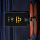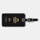 Elegante etiqueta de equipaje con el cartel de libra dorada sobre fondo negro.