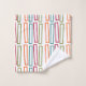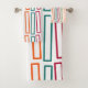 Este conjunto de toallas tiene un diseño moderno de mediados de siglo de repetición de rectángulos en verde azulado, naranja, remolacha y naranja sobre un campo de blanco. Si te gusta el diseño pero prefieres colores diferentes, envíame un mensaje.