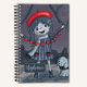 Libreta de dibujo personalizada para niños con una ilustración de tinta azul de una niña y un perro. La niña lleva un sombrero rojo y sostiene una guirnalda de corazones rojos que acaba de hacer. Elija entre una cubierta suave o dura.