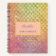 Rosa, verde océano púrpura y patrón de escamas de sirena con brillo dorado falso. Plantillas para tu nombre y título de un libro. Páginas en blanco, perfectas para garabatear, dibujar y escribir tus ideas de manualidades.