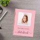 Un fondo rosa femenino. Personaliza y añade tu propia foto. Agrega un nombre y un título. El título está escrito con un estilo de letra manuscrita moderna con florituras. Letras de color negro. Un cuaderno para dibujar con tus hijos, para tu oficina en casa.