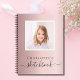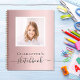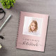 Un fondo rosa dorado rosa femenino y delicado. Personaliza y añade tu propia foto. Añade un nombre y un título. El título está escrito con un estilo de letra manuscrita moderna con florituras. Letras de color negro. Un cuaderno para dibujar con tus hijos, para tu oficina en casa.