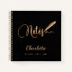 Un fondo negro chic. Con el texto: Notas y decorado con un bolígrafo de pluma. Personaliza y añade un nombre y texto (o elimínalo)