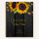 Libreta de recetas de campo rústicas cuaderno de notas con características cuerdas rústicas de luces centelleantes y grandes girasoles en un fondo oscuro de madera de granero. Puede ser un regalo hermoso para tu propia cocina o un regalo personalizado para alguien especial, en un aniversario, cumpleaños, Navidad, despedida de soltera o boda.