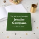 Este libro de visitas mínimo para el funeral/conmemoración muestra el mensaje "Estás en nuestros pensamientos", y el nombre personalizado y las fechas de nacimiento/muerte del individuo que ha fallecido. Tiene texto blanco sobre un fondo verde oscuro. Se podría usar para registrar deseos solidarios para los parientes y amigos de alguien que ha fallecido recientemente.