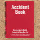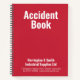 Libro de accidentes. Libro para que una empresa u organización registre los accidentes en el trabajo. Color de cubierta roja.