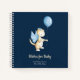 Complementa su fiesta de ducha de bebé con este libro de invitados. Tiene un ilustracion de un dragón bebé sosteniendo un globo azul sobre un fondo azul oscuro y el título dice "deseos para el bebé", pero todo el texto es personalizable. Ilustrado y diseñado por Patricia Álvarez.
