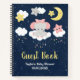 Este lindo y caprichoso libro de invitados presenta un adorable elefante bebé en una proa rosa sentado en una nube con estrellas en caída. En el fondo hay un cielo estrellado por la noche y una luna creciente. El texto combina guiones manuscritos y sans serif para un estilo elegante y moderno. Es perfecto para una ducha de bebé.