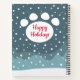 Paisaje nevado invernal, gato navidad usando un cuaderno de sketchbook personalizado de sombrero santa. Hermoso nombre personalizado feliz vacaciones mascota feline.
