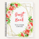 Este hermoso y elegante libro de bodas cuenta con sandía acuática, granada, fresas, cerezas y follaje sobre un marco geométrico dorado. El texto combina el guión manuscrito y las fuentes serif para un aspecto elegante y moderno. Es perfecto para un boda rústico de primavera o verano.