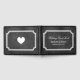 Boda de pizarra en blanco y negro personalizado con borde elegante y tipografía elegante. Accesorios personalizados para novias y novios / pronto para ser pareja casada. Permita que su libro de visitas esté firmado por huéspedes, familiares y amigos. Grabado vintage con imagen de fondo de pizarra. Obra de arte de estilo retro con gráficos de pizarra. Haz tu propio libro de visitas con la ayuda de esta hermosa plantilla.