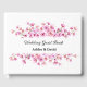 Este libro de bodas se muestra en una hermosa impresión floral rosa, el texto se muestra en color negro. Personalizar este elemento cambiando el texto de ejemplo y colocando su información en él. Imagen de archivo. freepik.com