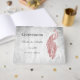 Graba a los invitados en tu gran día con un libro de visitas del Día de la Boda Pink Peacock. El diseño del libro de visitas presenta un pavo real elegante con un delicado follaje y un fondo de color gris. También hay material de boda adicional disponible con este diseño.