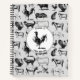 Collage rústico de animales de granja vintage en un fondo texturado de tono blanco/ gris y gallo con nombre personalizado en el centro. Un gran diseño para los amantes de los graneros de campo. Los ilustraciones negros y blancos de los animales de granja incluyen el perro ovino, el ovino, el caprino, el gato de granja, la vaca, el cerdo, el pavo, los pollos y mucho más. Un diseño rústico ideal para su casa o regalo para alguien especial. Personalizar el texto y hazlo propio.