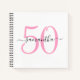 bloc de notas cuadrado minimalista rosa de 50 en blanco que se puede usar como libro de visitas en su especial 50º cumpleaños. Con cierta personalización, podrá desagrupar los números para que coincidan con otro cumpleaños de hito. Crea tu propio nombre de chica y cuaderno de cumpleaños.