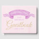 Adorable libro de invitados para fiestas de cumpleaños rosa con nombres personalizados, fecha, falso título de purpurina de oro, y un lindo diseño de monograma de mariposa color agua en la parte trasera. Ver mi tienda para la colección completa de coincidencias para tu fiesta de cumpleaños de chicas!