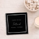Un libro de invitados para una fiesta de cumpleaños número 50 (o de cualquier edad). Un elegante fondo negro y un marco blanco. Añade tu nombre, edad, fecha. El nombre está escrito con una escritura de estilo con letras a mano moderna.