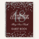 Una elegante plantilla de 18º Birthday Party Guest Book con el Purpurina de plata Confetti sobre el diseño de Borgoña y texto fácil de personalizar.