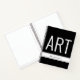 Portátil personalizado en blanco y negro para usar como arte o cuaderno de dibujo con un enorme título mínimo de "Arte por tu nombre" impreso en la portada en un tipo de letra sans serif moderno.
