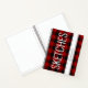 Cuaderno personalizado de cuaderno de cuaderno de cuaderno de dibujos y arte, con el título "Esbozos por... y tu nombre" impreso en la portada en grandes letras en negrita de gran tamaño. Cambie el color de fondo rojo a cualquier cosa que desee utilizando el editor avanzado.