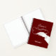 Personalizable de diseño rojo oscuro y blanco con una mano escribiendo la palabra "cuaderno de bocetos".