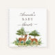Un libro de invitados para una ducha de bebé. Un fondo blanco con bosque y ciervo de color acuático. Madre e hijo. Neutralidad de género. Personalice y agregue un nombre. El nombre está escrito con una escritura de estilo con letras a mano moderna.