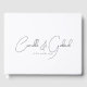 Esta caligrafía de escritura manuscrita blanca fluida en el libro de bodas blancos es perfecta para un boda moderno. Diseño minimalista sencillo.
