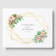 Este elegante libro de bodas tropicales cuenta con un marco dorado geométrico decorado con exuberantes ramos tropicales. Las flores acuáticas floridas incluyen delicadas flores de hibisco rosadas, flores de plumeria rosadas audaces, flores de coral de melocotón y hojas tropicales de color verde esmeralda. Personalice con sus nombres y fecha de boda en la parte delantera del libro de visitas y en la columna vertebral, luego añada su nuevo monograma de casados al dorso del libro. Ver la papelería boda de coordinación en nuestra colección de bodas Florales Tropicales.