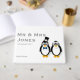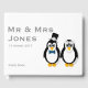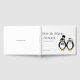 Gráfica de pingüino de novias y novios impreso en un libro de bodas. Personalizable para el nombre y la fecha de boda de la nueva pareja. ¡No olvides personalizar la columna vertebral!