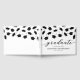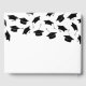 Libro de invitados moderno para fiestas de graduación con un sencillo fondo blanco que se puede cambiar a cualquier color, gorras de mortero negras cayendo y una plantilla de texto moderna que es fácil de personalizar.