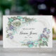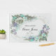 Libro funerario floral con texto de personalizable. Flores en un patrón de flor sobre un fondo blanco.