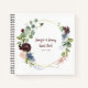 Floral y geométrica de color acuático rústico en burdeos, marina y rosa con contornos dorados y libro de invitados de vegetación. Personaliza con tu propio nombre y fecha.