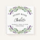 Un elegante fondo blanco decorado con flores de lavanda y vegetación de eucalipto. Personalice y agregue su nombre y texto.