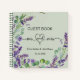 Un fondo verde salado decorado con flores de lavanda y vegetación de eucalipto. Sr. y Sra. con corazón. Personalice y agregue sus nombres y fecha de boda.