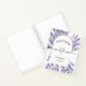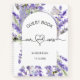Un elegante fondo blanco decorado con un armazón de flores de lavanda violeta. Sr. y Sra. con corazón. Personalice y agregue sus nombres y fecha de boda.