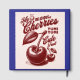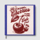 Este diseño presenta un ilustracion de cerezo alegre de estilo vintage en tonos rojos profundos, acompañado de una tipografía retro audaz. El texto dice "Mis deliciosas cerezas" con una sonriente mascota de cerezas arriba, junto con frases divertidas como "Yumi Yumi" y "Fruta Cuta". Las cerezas y hojas grandes y detalladas le dan un ambiente poster y nostálgico a los mercados de frutas, mientras que el conjunto combina dulzura y encanto con una estética clásica a mano.