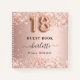 Un libro de visitas para una fiesta de cumpleaños glamurosa y femenina. Un elegante rosa de oro falso de aspecto metálico con un falso polvo purpurina. Añade tu nombre, texto. El número 18 se escribe con un tipo de letra de estilo globo.