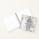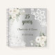 Un libro de visitas para el 25º aniversario de los bodas. Un fondo falso plateado decorado con flores blancas, rosas y encaje. Personalice y agregue sus nombres y fecha.