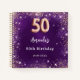 Un libro de visitas para una fiesta de cumpleaños 50 femenina y glamurosa. Un elegante fondo violeta con finos destellos de color violeta y oro rosa. El color púrpura es desigual. Personalice y agregue su nombre y una fecha.