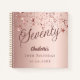 Un libro de visitas para una fiesta de cumpleaños 70 femenina y glamurosa. Fondo de degradado de oro subió, decorado con estrellas. Agrega tu nombre y texto.