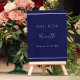 Un fondo azul marino clásico, un marco falso plateado. Personalización y nombre y edad/fecha. Texto blanco.
