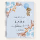 Para una ducha infantil moderna y elegante. Un fondo azul claro. Decorado con azul claro, flores, pampas y un oso de peluche sosteniendo un globo. Personalice y agregue un nombre y una fecha. Puede utilizarse como libro de visitas o para planificar el fiesta.